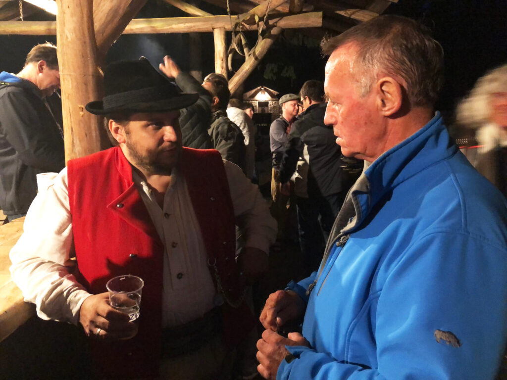 Bild rechts: Zwei österreichische Jenische im Gespräch. Am fünften Jenischen Kulturtag, veranstaltet von der Initiative Minderheiten Tirol im Ort Sautens 2020.