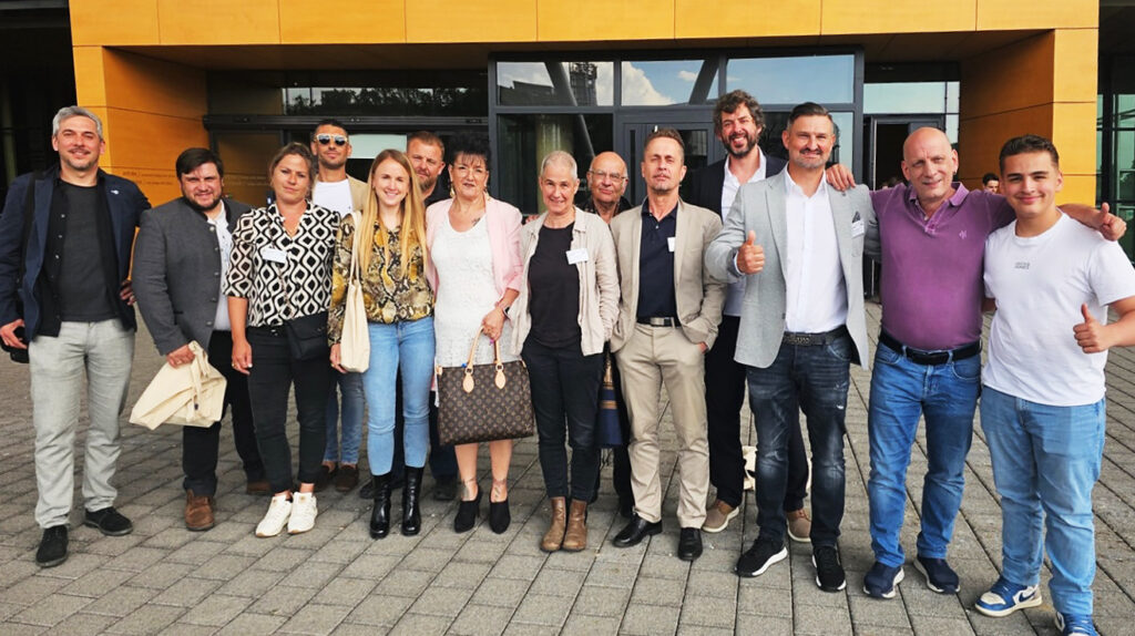 Versammlung im Schloss Ichenhausen an einem Jenischen Kulturtag des Zentralrates der Jenischen Deutschlands. Die Mehrheit der Anwesenden sind Jenische.