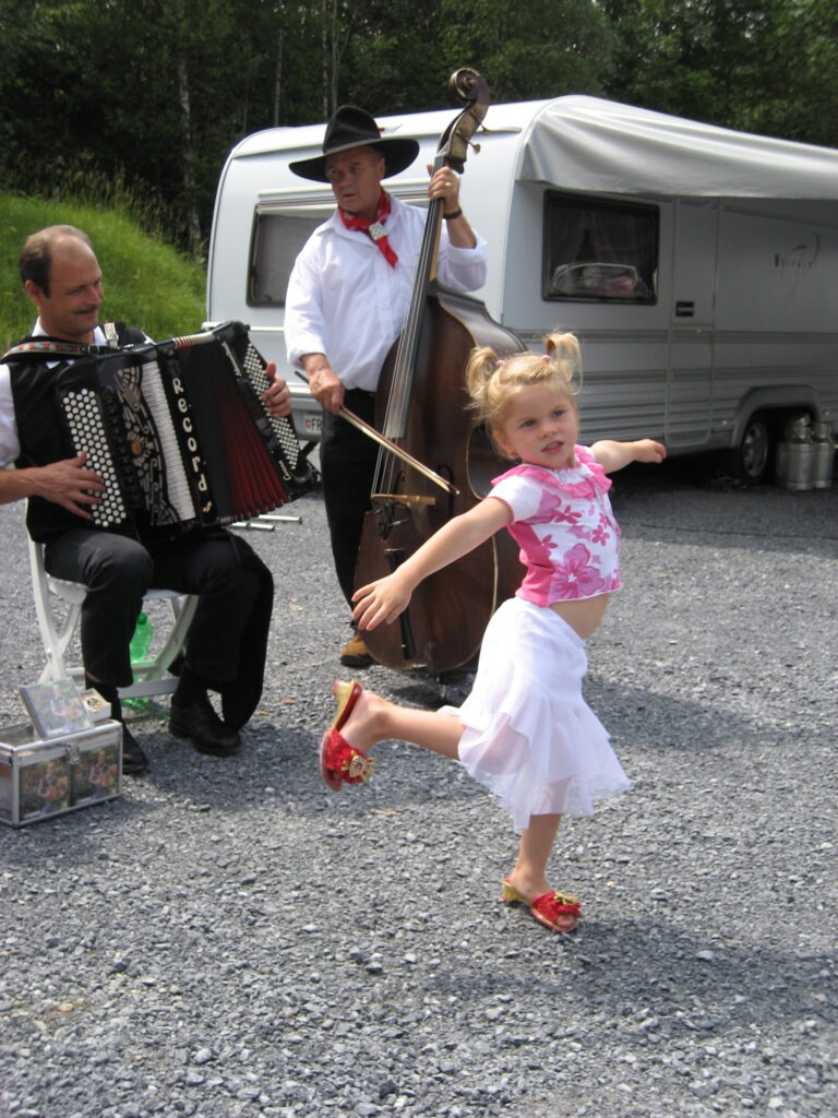 Tanzendes Mädchen, aufgenommen bei der Eröffnung des Platzes Bonaduz GR im Jahr 2007. Titelbild der Publikation «Jenische Kultur», herausgegeben von der Radgenosssenschaft.